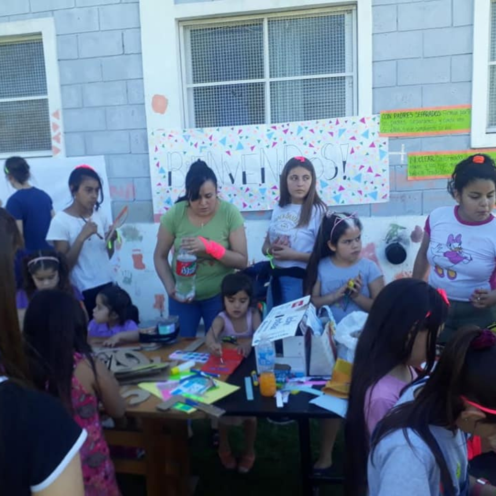 Lo primero que se recuperó fue la canchita pegado a la capilla. Se hicieron actividades para recaudar fondos y se compraron unas hamacas. A la vez, en una casita prestada se recibieron a las familias, se organizaron días y horarios para la contención de las mamás, hubo un proyecto de huerta, talleres de costura y tejido, en la semana se daba apoyo escolar con estudiantes voluntarios y las mismas madres venían a dar la merienda. La idea era valorar los saberes que todos tenemos.